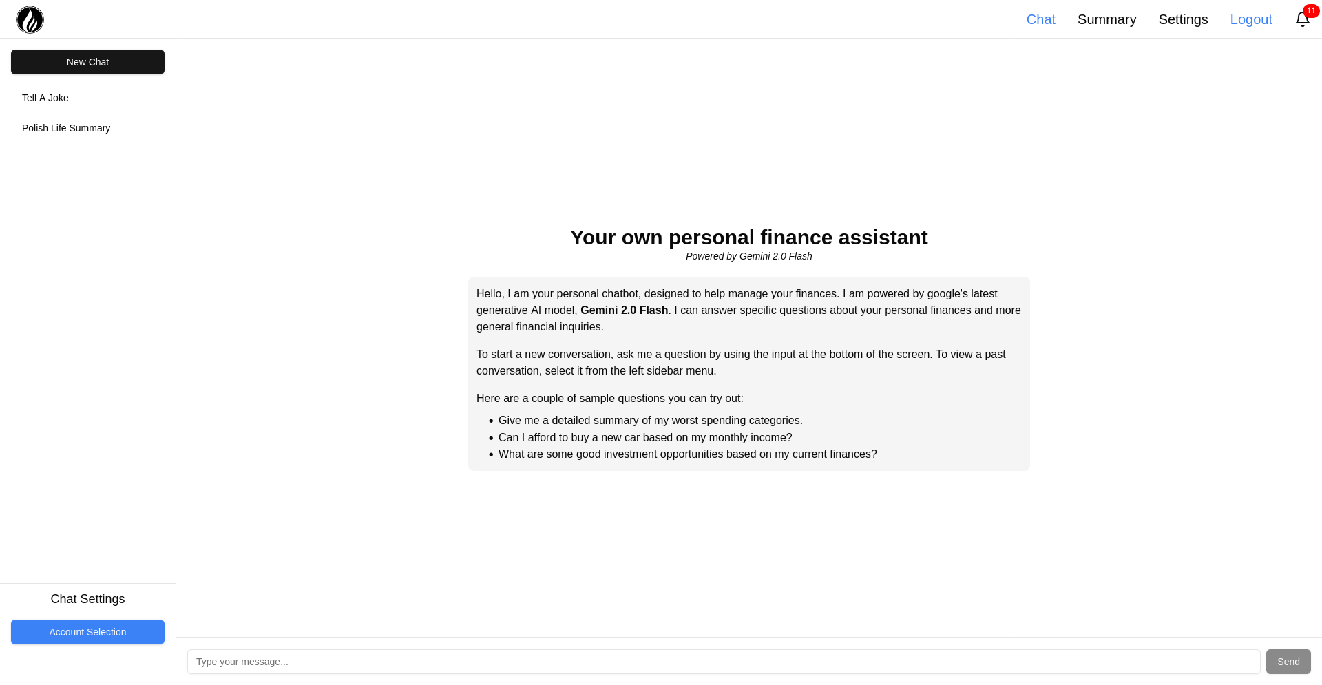 My 4th year capstone project at UBC involved building an AI web application, focusing on delivering financial advice to users. We build this project for ClearJar, a startup company run by a recent UBC graduate. The goal was create a chatbot that can answer user specific questions about the user's finances. It tried to replicate the experience and advice someone would get by visiting their own financial assistant.