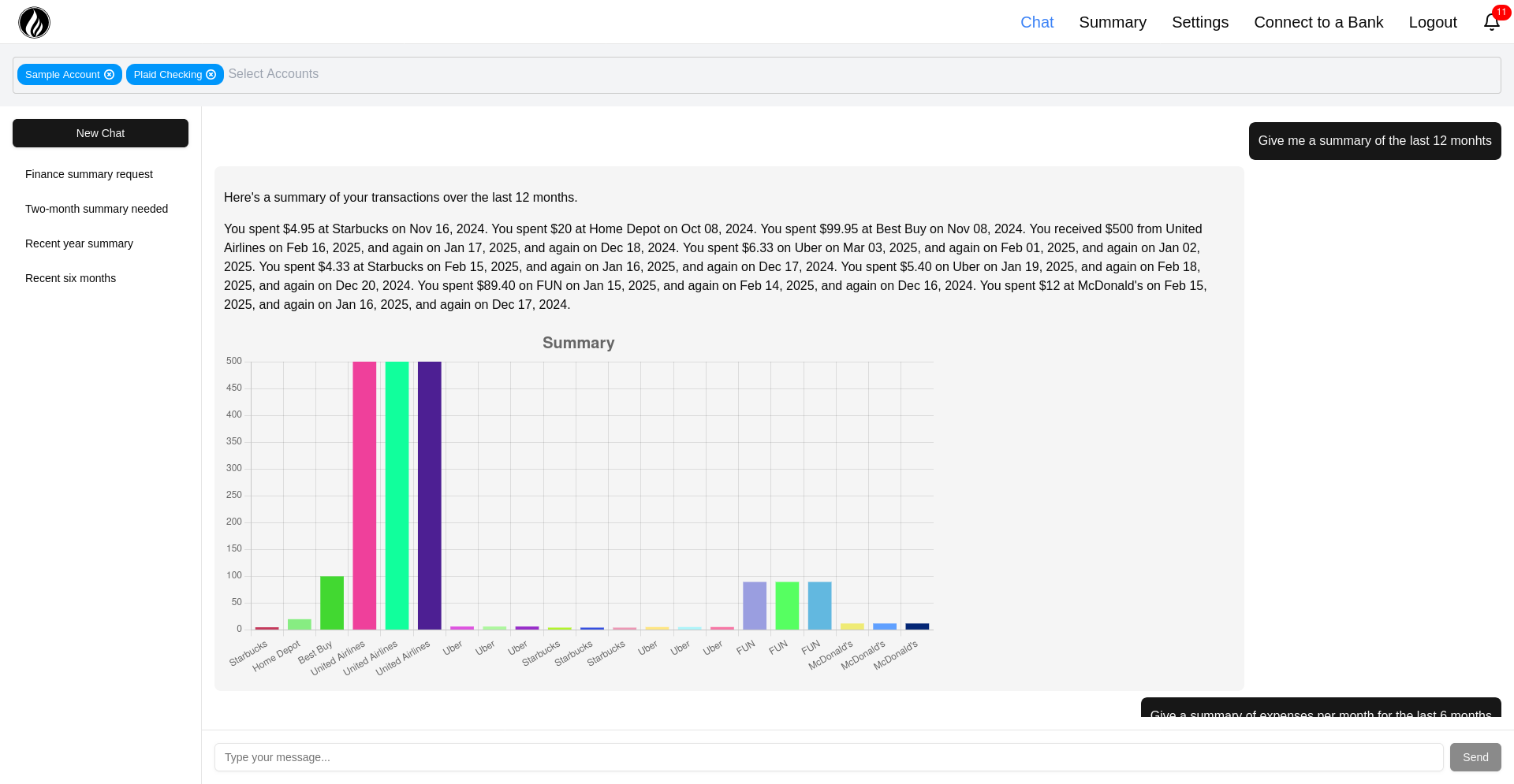 There are many levels to this project. First we used a vector database to classify different types of transactional data based on semantic meaning. For example, when searching for data, a "coffee" and a "tea" would be close by in the 3D vector space. Then, we managed bank connections through Plaid, an external API service. Finally, we used Gemini, Google's AI model, to answer the user's question, based on data retrieved through plaid and Pinecone.
